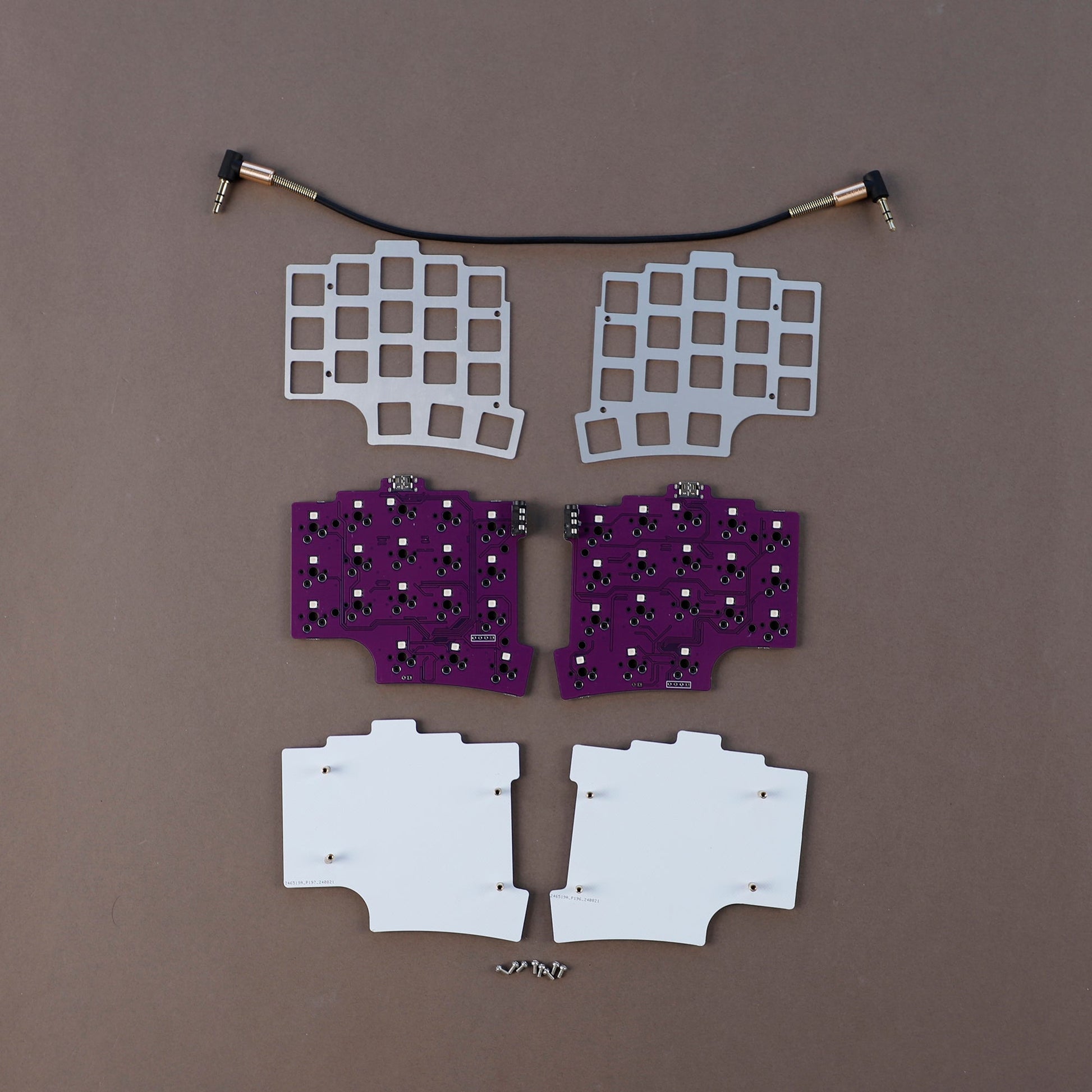 1. Contains two parts and a TRS cable. Note: The TRS cable connecting the two parts does not support hot plugging, so do NOT plug or unplug the keyboard when it is powered on. The Type C cable can be plugged into either part.